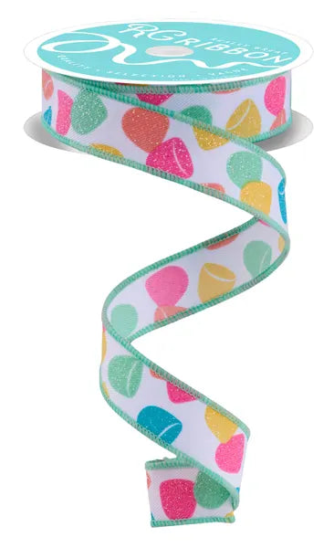 Vibrant gumdrops ribbon brings playful charm to any creative project. This 7/8-inch wide roll offers 10 yards of continuous material, perfect for gift wrapping, crafting, decorative accents, or embellishing cards and scrapbooks. The cheerful candy-inspired design adds a whimsical touch to presentations and handmade creations. Ideal for crafters, event planners, and anyone seeking to elevate their projects with eye-catching detail and festive flair.