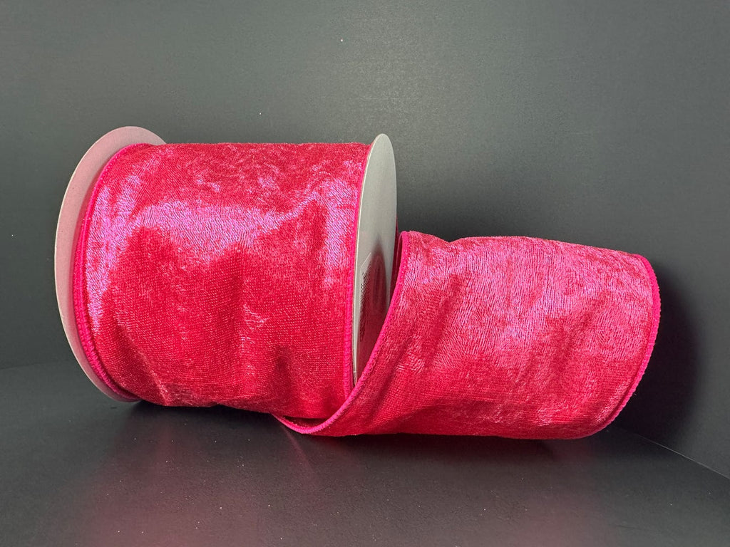 This Fuchsia Lush Velvet ribbon measures 4 inches wide by 10 yards long, crafted from 100% polyester for a smooth, rich texture with lasting durability. Its vibrant color and luxurious finish make it ideal for elegant gift wrapping, floral arrangements, or decorative accents that demand both style and resilience. Perfect for professional crafters seeking high-quality materials to enhance their projects.