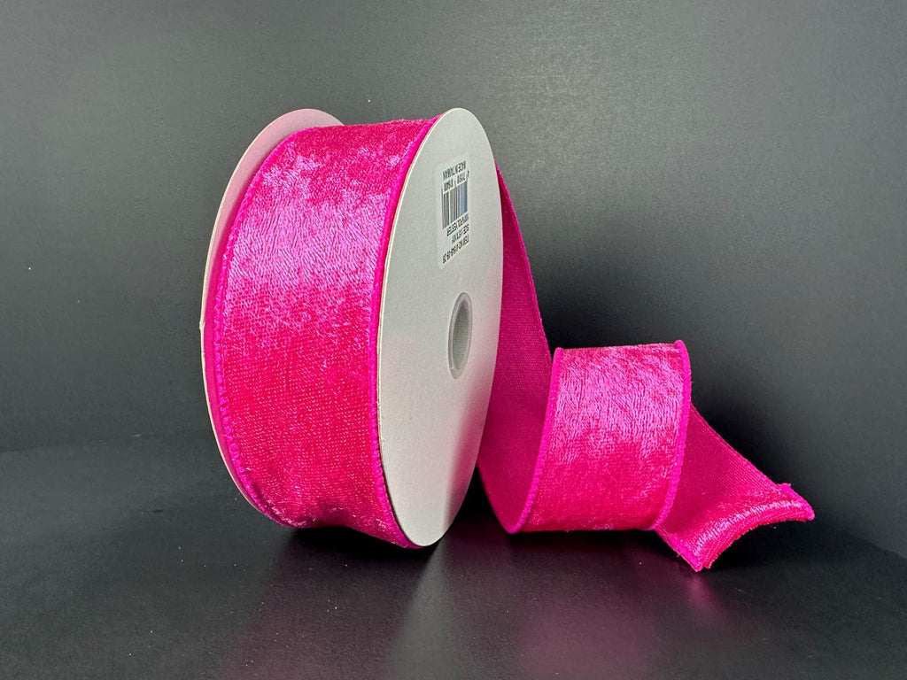 This Fuchsia Lush Velvet ribbon measures 1.5 inches wide by 10 yards long, crafted from 100% polyester for a smooth, rich texture with lasting durability. Its vibrant color and luxurious finish make it ideal for elegant gift wrapping, floral arrangements, or decorative accents that demand both style and resilience. Perfect for professional crafters seeking high-quality materials to enhance their projects.